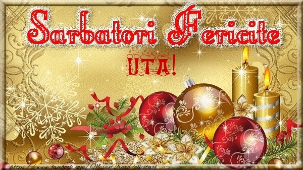 Felicitarea cu fundal cu globuri, lumânari și aranjamente de Crăciun pentru Uta spune o poveste de iarnă unică, iar numele Uta este eroul principal. Este o călătorie captivantă în lumea minunată a Crăciunului, personalizată pentru a aduce bucurie și emoție.