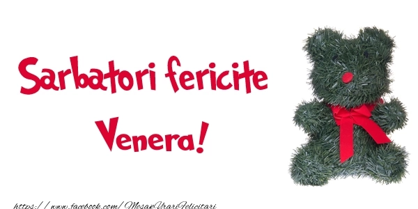 Această felicitare cu ursuleț de pluș din colecția noastră de felicitari de Craciun cu numele Venera are o notă de originalitate și îți oferă ocazia să faci o persoană să se simtă specială datorită faptului că acolo este numele ei. Felicitarea se poate descărca gratuit sau se poate trimite prin Whatsapp, Facebook, Twitter, Pinterest. Imagine de Sărbătoarea Crăciunului cu ursuleț de pluș cu dimensiunile 600px x 300px și cu textul Sarbatori fericite Venera!.