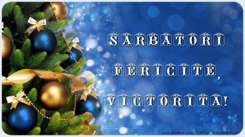 Această felicitare cu brad cu globuri albastru-auriu din colecția noastră de felicitari de Craciun cu numele Victorita are o notă de originalitate și îți oferă ocazia să faci o persoană să se simtă specială datorită faptului că acolo este numele ei. Felicitarea se poate descărca gratuit sau se poate trimite prin Whatsapp, Facebook, Twitter, Pinterest. Imagine de Sărbătoarea Crăciunului cu brad cu globuri albastru-auriu cu dimensiunile 800px x 450px și cu textul Sarbatori Fericite, Victorita.