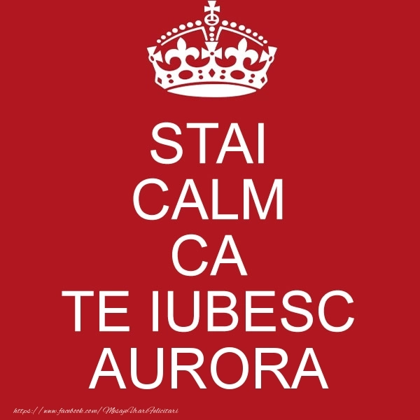 Felicitare cu un mesaj KEEP CALM - STAI CALM transmite autenticitatea și frumusețea dragostei, iar numele Aurora este elementul central al acestei experiențe romantice. Este un mod elegant de a exprima profunzimea sentimentelor tale.