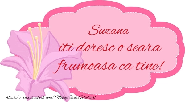 În această seară, liniștea aduce cu sine un sentiment de căldură special creat pentru Suzana. Fiecare moment este un moment de bucurie, iar această felicitare cu aranjament cu flori mov și roz de bună seara pentru Suzana aduce această atmosferă liniștitoare.