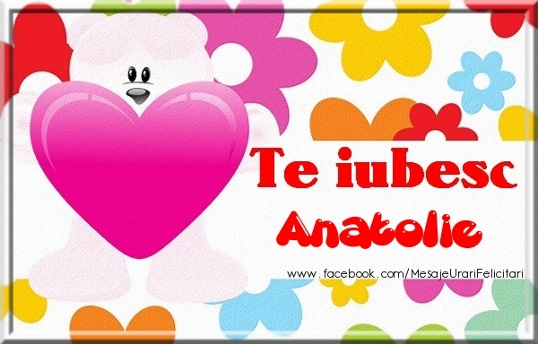 Această felicitare cu ursulet cu inimioara din colecția noastră de felicitari de dragoste cu numele Anatolie are o notă de originalitate și îți oferă ocazia să faci o persoană să se simtă specială datorită faptului că acolo este numele ei. Felicitarea se poate descărca gratuit sau se poate trimite prin Whatsapp, Facebook, Twitter, Pinterest. Imagine de iubire cu ursulet cu inimioara cu dimensiunile 600px x 384px și cu textul Te iubesc Anatolie.