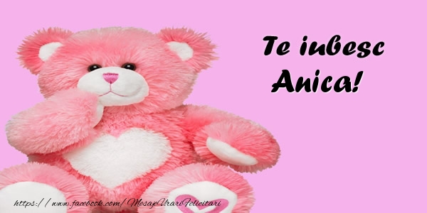 Te iubesc Anica! | Felicitare cu ursuleț de pluș roz cu inimioară | Felicitari de dragoste