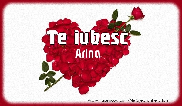 Această felicitare cu inimă din trandafiri din colecția noastră de felicitari de dragoste cu numele Arina are o notă de originalitate și îți oferă ocazia să faci o persoană să se simtă specială datorită faptului că acolo este numele ei. Felicitarea se poate descărca gratuit sau se poate trimite prin Whatsapp, Facebook, Twitter, Pinterest. Imagine de iubire cu inimă din trandafiri cu dimensiunile 600px x 349px și cu textul Te iubesc Arina.