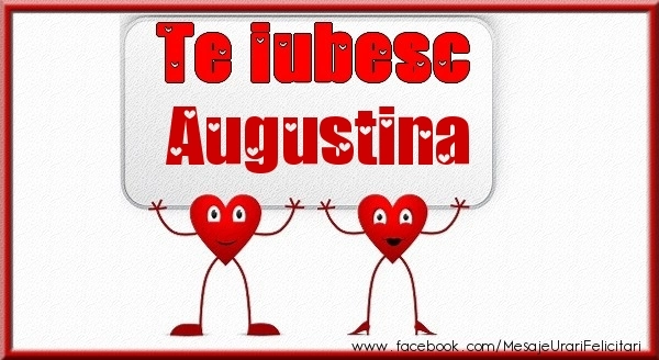 Această felicitare cu inimoare haioase din colecția noastră de felicitari de dragoste cu numele Augustina are o notă de originalitate și îți oferă ocazia să faci o persoană să se simtă specială datorită faptului că acolo este numele ei. Felicitarea se poate descărca gratuit sau se poate trimite prin Whatsapp, Facebook, Twitter, Pinterest. Imagine de iubire cu inimoare haioase cu dimensiunile 600px x 328px și cu textul Te iubesc Augustina.