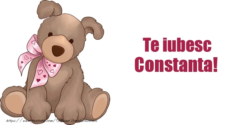 Această felicitare cu ursuleț cu eșarfă cu inimioare din colecția noastră de felicitari de dragoste cu numele Constanta are o notă de originalitate și îți oferă ocazia să faci o persoană să se simtă specială datorită faptului că acolo este numele ei. Felicitarea se poate descărca gratuit sau se poate trimite prin Whatsapp, Facebook, Twitter, Pinterest. Imagine de iubire cu ursuleț cu eșarfă cu inimioare cu dimensiunile 800px x 400px și cu textul Te iubesc Constanta! .