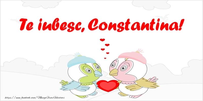 Această felicitare cu doi puișori îndrăgostiți din colecția noastră de felicitari de dragoste cu numele Constantina are o notă de originalitate și îți oferă ocazia să faci o persoană să se simtă specială datorită faptului că acolo este numele ei. Felicitarea se poate descărca gratuit sau se poate trimite prin Whatsapp, Facebook, Twitter, Pinterest. Imagine de iubire cu doi puișori îndrăgostiți cu dimensiunile 800px x 400px și cu textul Te iubesc, Constantina!.