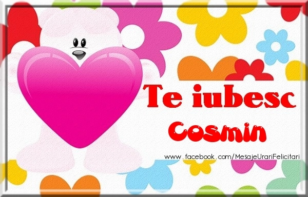 Această felicitare cu ursulet cu inimioara din colecția noastră de felicitari de dragoste cu numele Cosmin are o notă de originalitate și îți oferă ocazia să faci o persoană să se simtă specială datorită faptului că acolo este numele ei. Felicitarea se poate descărca gratuit sau se poate trimite prin Whatsapp, Facebook, Twitter, Pinterest. Imagine de iubire cu ursulet cu inimioara cu dimensiunile 600px x 384px și cu textul Te iubesc Cosmin.