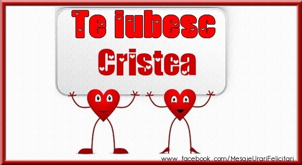 Această felicitare cu inimoare haioase din colecția noastră de felicitari de dragoste cu numele Cristea are o notă de originalitate și îți oferă ocazia să faci o persoană să se simtă specială datorită faptului că acolo este numele ei. Felicitarea se poate descărca gratuit sau se poate trimite prin Whatsapp, Facebook, Twitter, Pinterest. Imagine de iubire cu inimoare haioase cu dimensiunile 600px x 328px și cu textul Te iubesc Cristea.