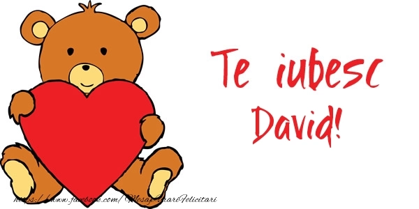 Această felicitare cu ursuleț cu o inimă roșie din colecția noastră de felicitari de dragoste cu numele David are o notă de originalitate și îți oferă ocazia să faci o persoană să se simtă specială datorită faptului că acolo este numele ei. Felicitarea se poate descărca gratuit sau se poate trimite prin Whatsapp, Facebook, Twitter, Pinterest. Imagine de iubire cu ursuleț cu o inimă roșie cu dimensiunile 600px x 300px și cu textul Te iubesc David!.