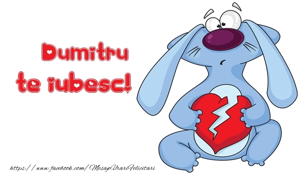 Această felicitare cu un animal cu inimă în brațe din colecția noastră de felicitari de dragoste cu numele Dumitru are o notă de originalitate și îți oferă ocazia să faci o persoană să se simtă specială datorită faptului că acolo este numele ei. Felicitarea se poate descărca gratuit sau se poate trimite prin Whatsapp, Facebook, Twitter, Pinterest. Imagine de iubire cu un animal cu inimă în brațe cu dimensiunile 600px x 350px și cu textul Te iubesc Dumitru! .
