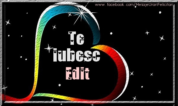Această felicitare cu inimioară pe fundal negru cu steluțe din colecția noastră de felicitari de dragoste cu numele Edit are o notă de originalitate și îți oferă ocazia să faci o persoană să se simtă specială datorită faptului că acolo este numele ei. Felicitarea se poate descărca gratuit sau se poate trimite prin Whatsapp, Facebook, Twitter, Pinterest. Imagine de iubire cu inimioară pe fundal negru cu steluțe cu dimensiunile 600px x 360px și cu textul Te iubesc Edit.