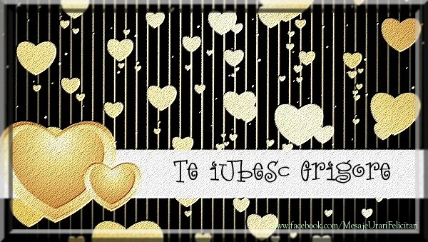 Te iubesc Grigore | Felicitare cu inimioare aurii | Felicitari de dragoste