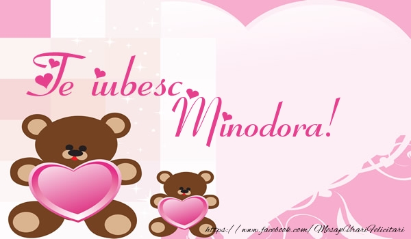 Te iubesc Minodora! | Felicitare cu 2 ursuleți și multe inimioare | Felicitari de dragoste