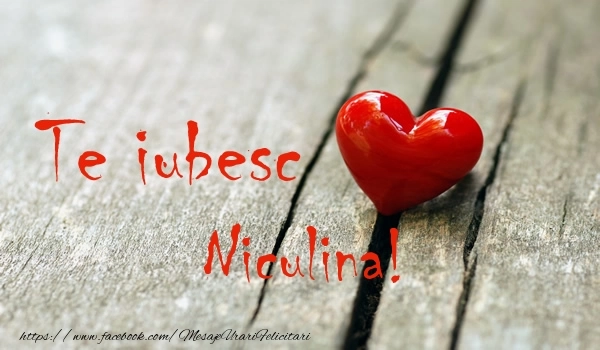 Această felicitare cu inima rosie 3D din colecția noastră de felicitari de dragoste cu numele Niculina are o notă de originalitate și îți oferă ocazia să faci o persoană să se simtă specială datorită faptului că acolo este numele ei. Felicitarea se poate descărca gratuit sau se poate trimite prin Whatsapp, Facebook, Twitter, Pinterest. Imagine de iubire cu inima rosie 3D cu dimensiunile 600px x 350px și cu textul Te iubesc Niculina!.