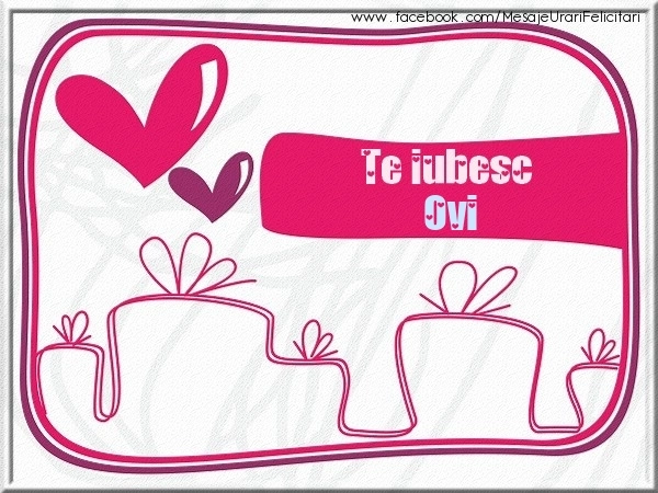Această felicitare cu cadouri și inimioare din colecția noastră de felicitari de dragoste cu numele Ovi are o notă de originalitate și îți oferă ocazia să faci o persoană să se simtă specială datorită faptului că acolo este numele ei. Felicitarea se poate descărca gratuit sau se poate trimite prin Whatsapp, Facebook, Twitter, Pinterest. Imagine de iubire cu cadouri și inimioare cu dimensiunile 600px x 450px și cu textul Te iubesc Ovi.