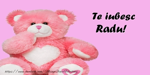 Te iubesc Radu! | Felicitare cu ursuleț de pluș roz cu inimioară | Felicitari de dragoste