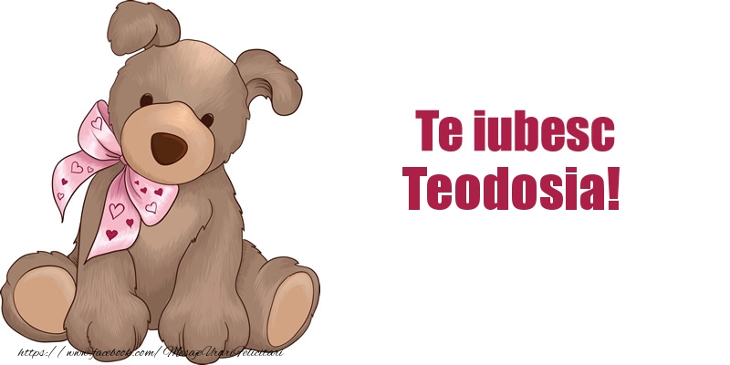 Te iubesc Teodosia! | Felicitare cu ursuleț cu eșarfă cu inimioare | Felicitari de dragoste