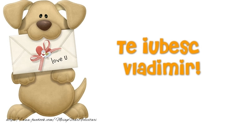 Această felicitare cu un căteluș cu o scrisoare love you în gură din colecția noastră de felicitari de ziua indragostitilor cu numele Vladimir are o notă de originalitate și îți oferă ocazia să faci o persoană să se simtă specială datorită faptului că acolo este numele ei. Felicitarea se poate descărca gratuit sau se poate trimite prin Whatsapp, Facebook, Twitter, Pinterest. Imagine de Valentine's day cu un căteluș cu o scrisoare love you în gură cu dimensiunile 800px x 400px și cu textul Te iubesc Vladimir!.