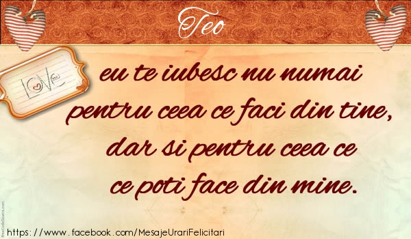 Felicitari de dragoste | Teo te iubesc si mi-e dor de tine!