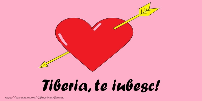 Această felicitare cu inima cu sageata din colecția noastră de felicitari de dragoste cu numele Tiberia are o notă de originalitate și îți oferă ocazia să faci o persoană să se simtă specială datorită faptului că acolo este numele ei. Felicitarea se poate descărca gratuit sau se poate trimite prin Whatsapp, Facebook, Twitter, Pinterest. Imagine de iubire cu inima cu sageata cu dimensiunile 800px x 400px și cu textul Tiberia, te iubesc!.
