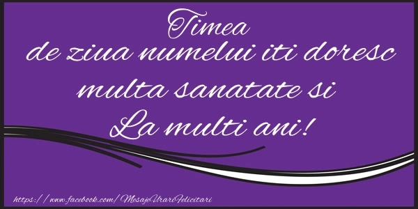 Timea de ziua numelui iti doresc multa sanatate si La multi ani! | Felicitare cu mesaj pe fundal mov | Felicitari de Ziua Numelui