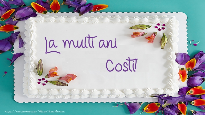La multi ani Costi! | Felicitare cu tort de frișca și flori | Felicitari de zi de nastere