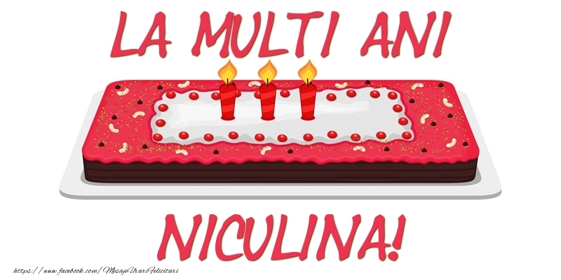 Transformă ziua de naștere a cuiva drag cu numele Niculina într-o petrecere plină de magie și lumină cu felicitarea de zi de naștere, care îți aduce un tort delicios împodobit cu trei lumânări strălucitoare, pregătit să aducă un strop de fericire și emoție acestă zi specială!