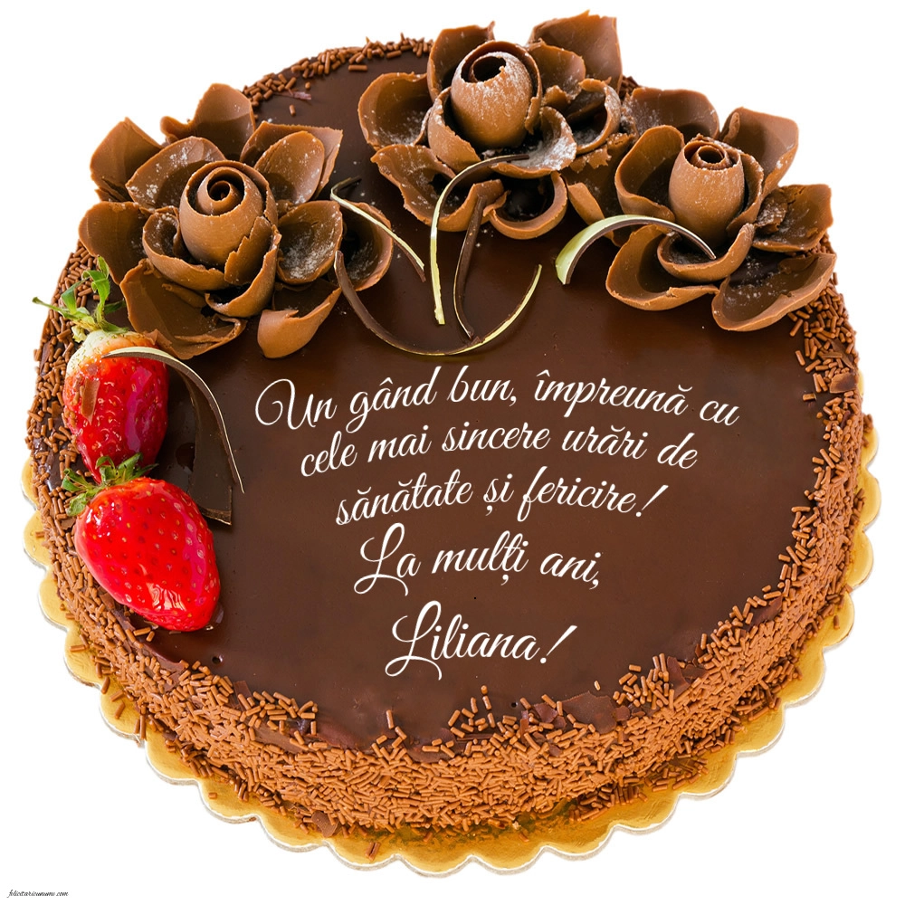 Un gând bun, împreună cu cele mai sincere urări de sănătate și fericire! La mulți ani, Liliana! | Felicitare cu tort de ciocolată cu căpșuni | Felicitari de zi de nastere