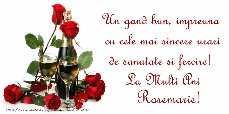 Un gand bun, impreuna cu cele mai sincere urari de sanatate si fercire! La Multi Ani Rosemarie! | Felicitare cu un aranjament cu trandafiri și șampanie | Felicitari de zi de nastere