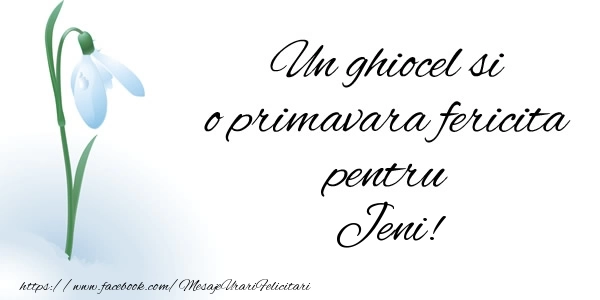 Un ghiocel si o primavara fericita pentru Jeni! | Felicitare cu un ghiocel care vesteste primavara | Felicitari de Martisor