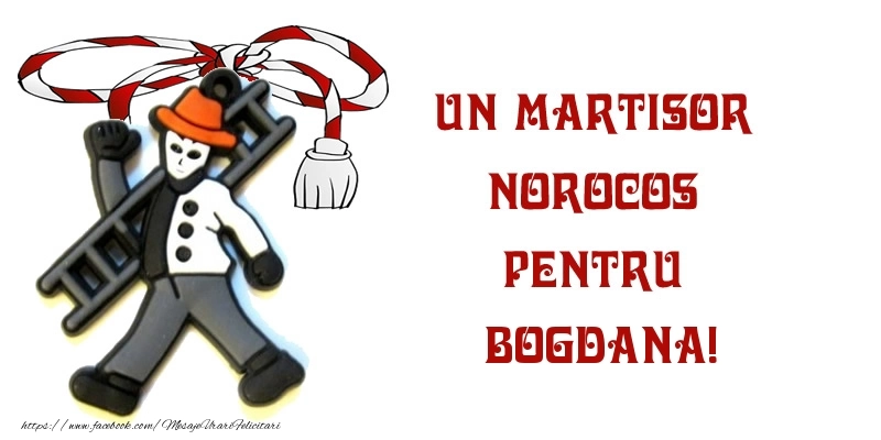 Transformă Mărțișorul într-o experiență personală! Această felicitare de 1 Martie cu mărtișor cu coșar pentru noroc este gândită și creată cu atenție, iar numele Bogdana se îmbină armonios în designul primăvăratic. O urare cu adevărat specială pentru o persoană unică.