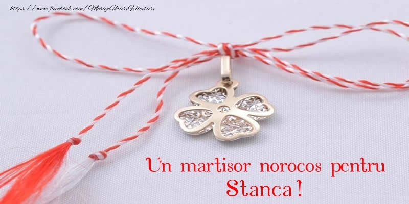 Transformă Mărțișorul într-o experiență personală! Această felicitare de 1 Martie cu medalion cu trifoi cu patru foi este gândită și creată cu atenție, iar numele Stanca se îmbină armonios în designul primăvăratic. O urare cu adevărat specială pentru o persoană unică.