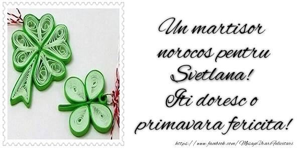 Un martisor norocos pentru Svetlana! Iti doresc o primavara fericita! | Felicitare cu mărțisoare cu trifoi cu 4 foi | Felicitari de Martisor