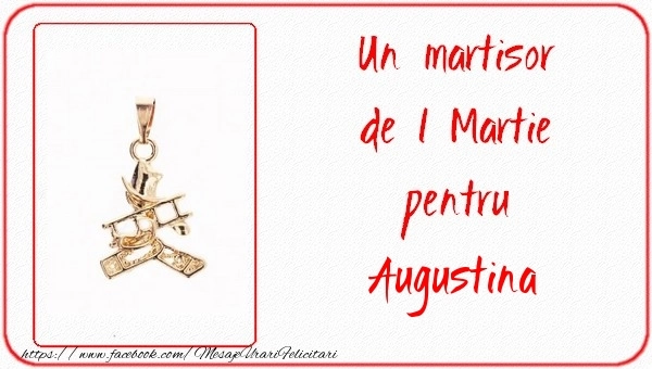Transformă Mărțișorul într-o experiență personală! Această felicitare de 1 Martie cu mărtișor medalion cu coșar este gândită și creată cu atenție, iar numele Augustina se îmbină armonios în designul primăvăratic. O urare cu adevărat specială pentru o persoană unică.