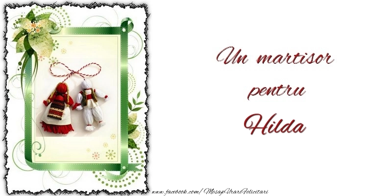 Transformă Mărțișorul într-o experiență personală! Această felicitare de 1 Martie cu mărțișor tradițional în tablou cu flori este gândită și creată cu atenție, iar numele Hilda se îmbină armonios în designul primăvăratic. O urare cu adevărat specială pentru o persoană unică.