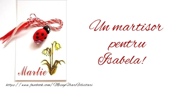 Transformă Mărțișorul într-o experiență personală! Această felicitare de 1 Martie cu mărtișor cu buburuză și ghiocei pentru femei este gândită și creată cu atenție, iar numele Isabela se îmbină armonios în designul primăvăratic. O urare cu adevărat specială pentru o persoană unică.
