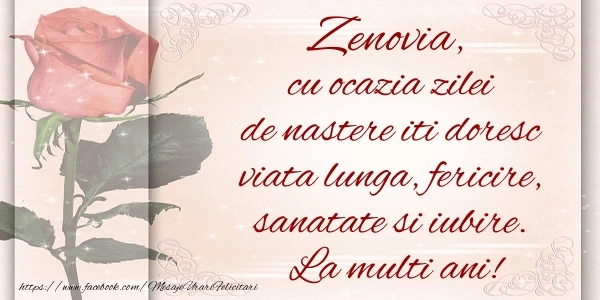 Zenovia cu ocazia zilei de nastere iti doresc viata lunga, fericire, sanatate si iubire. La multi ani! | Felicitare cu trandafir pentru femei sau fete pe fundal roz | Felicitari de zi de nastere