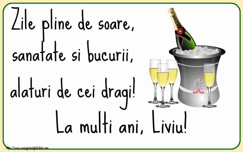 Zile pline de soare, sanatate si bucurii, alaturi de cei dragi! La multi ani, Liviu! | Felicitare cu șampanie în frapieră | Felicitari de la multi ani